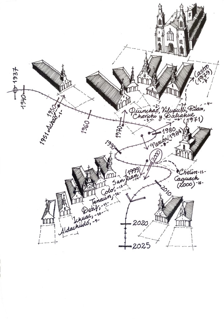 A 25 años del reconocimiento de las iglesias de Chiloé como Sitio Patrimonio Mundial, (en adelante SPM), es interesante realizar una revisión y reflexión sobre el recorrido que han tenido. Por un lado, se aborda el momento previo a la declaratoria de SPM, la declaratoria misma y el desarrollo posterior, identificando hitos y etapas de un recorrido con distintas asociaciones, obras, planes y políticas públicas.